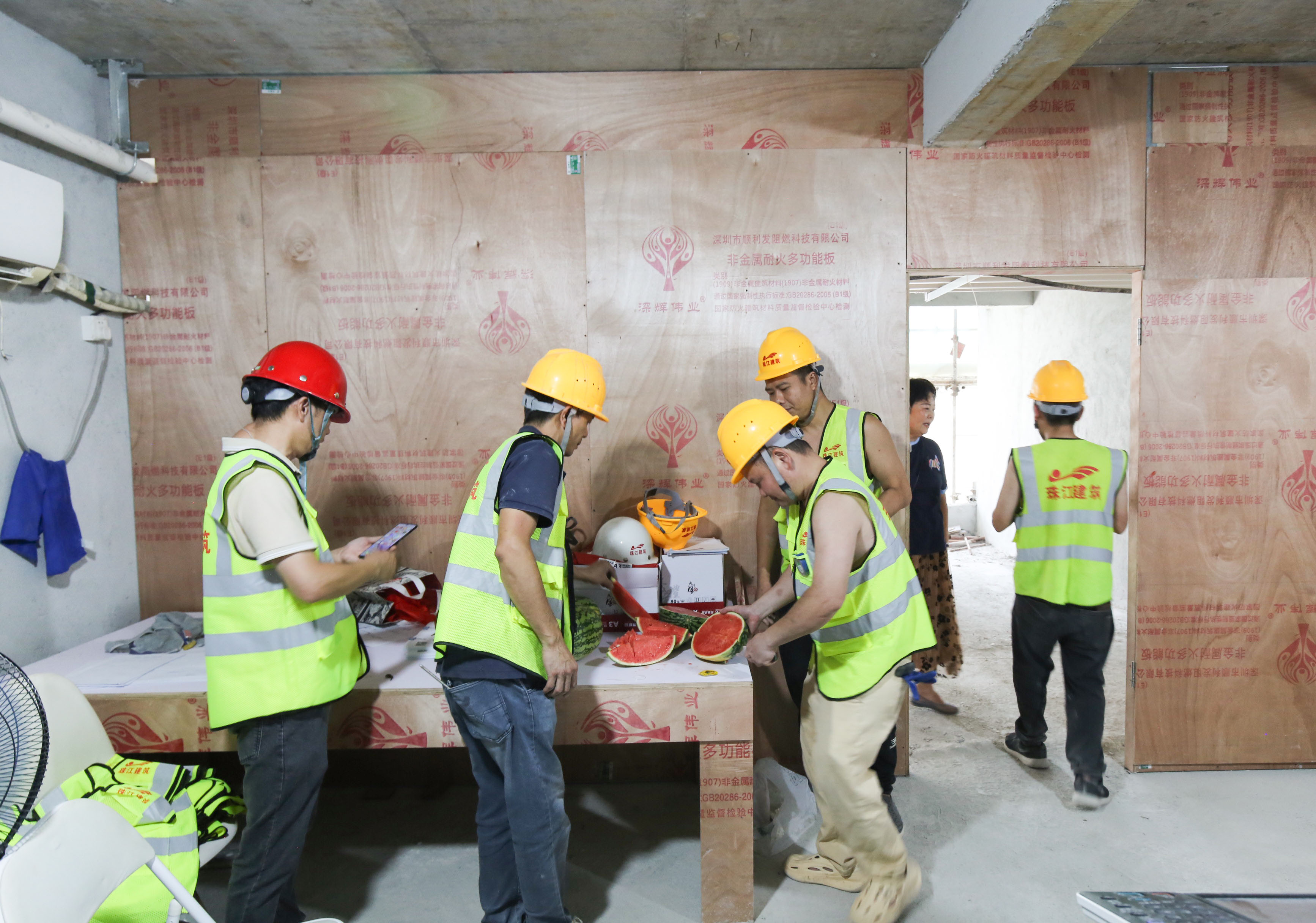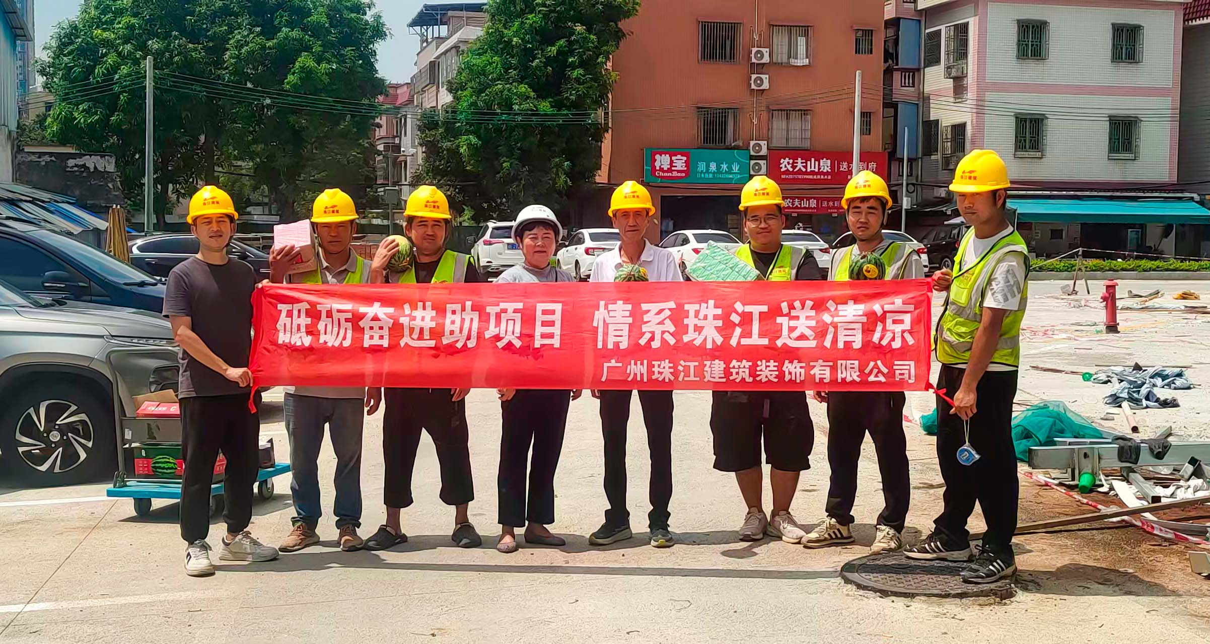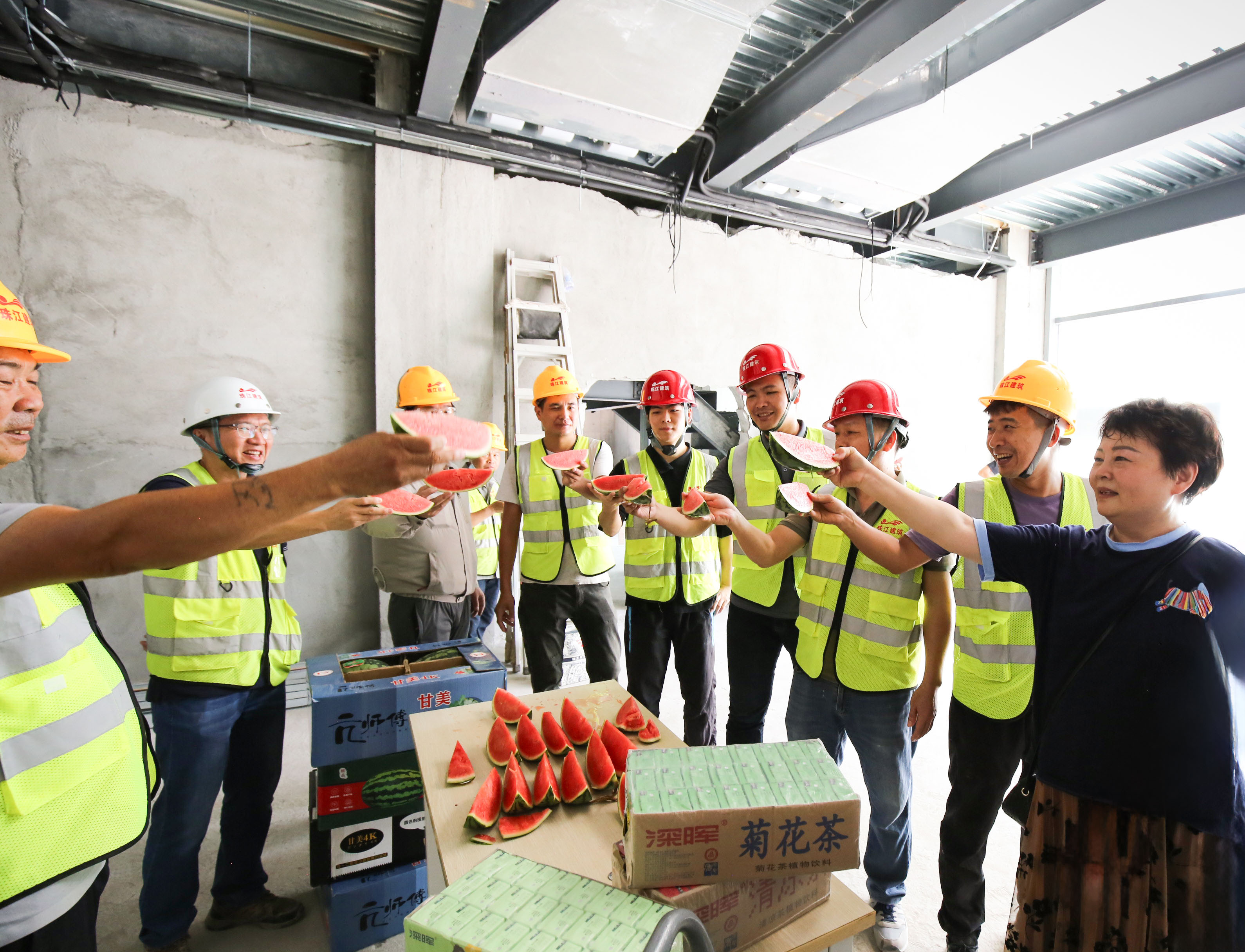 入伏以来,酷暑难耐,面对滚滚热浪,公司各在建项目的一线职工始终鏖战在钢筋水泥之间,用汗水丈量进度,用坚守诠释担当。为切实做好高温季节防暑降温工作,保障高温岗位职工健康安全,完美(中国)体育官方网站慰问组近日开展高温慰问活动,带着西瓜、藿香正气水、清凉饮品等防暑降温物资前往前往健力宝华南运营总部、乐比健康生物医药企业总部及产品研发生产基地、沙湾金寺围二期项目精装修工程、三联“新水河”地段项目外立面工程等项目。